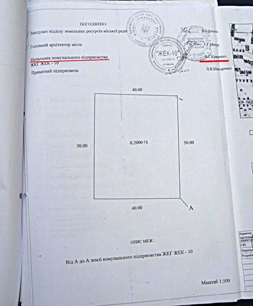 Повертаючись до розгляду документації на будівництво, то навіть при побіжному її вивченні журналіст Ігор Грищенко звернув увагу на окремі моменти, які дають привід задуматися про те, як прибудинкова територія перетворилася на будівельний майданчик. Справа в тому, що дана земельна ділянка згідно кадастрового плану є нічим іншим, як прибудинковою територією, переданої комунальному підприємству «ЖЕК-10» у користування з метою обслуговування. А ЖЕКом на той час керував Володимир Кривенко, який займає сьогодні посаду заступника міського голови.